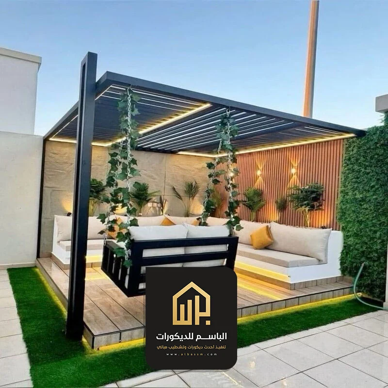 - شكل جميل: التصميم الحديث للمظلات والسواتر يعزز من جمال المساحة الخارجية.