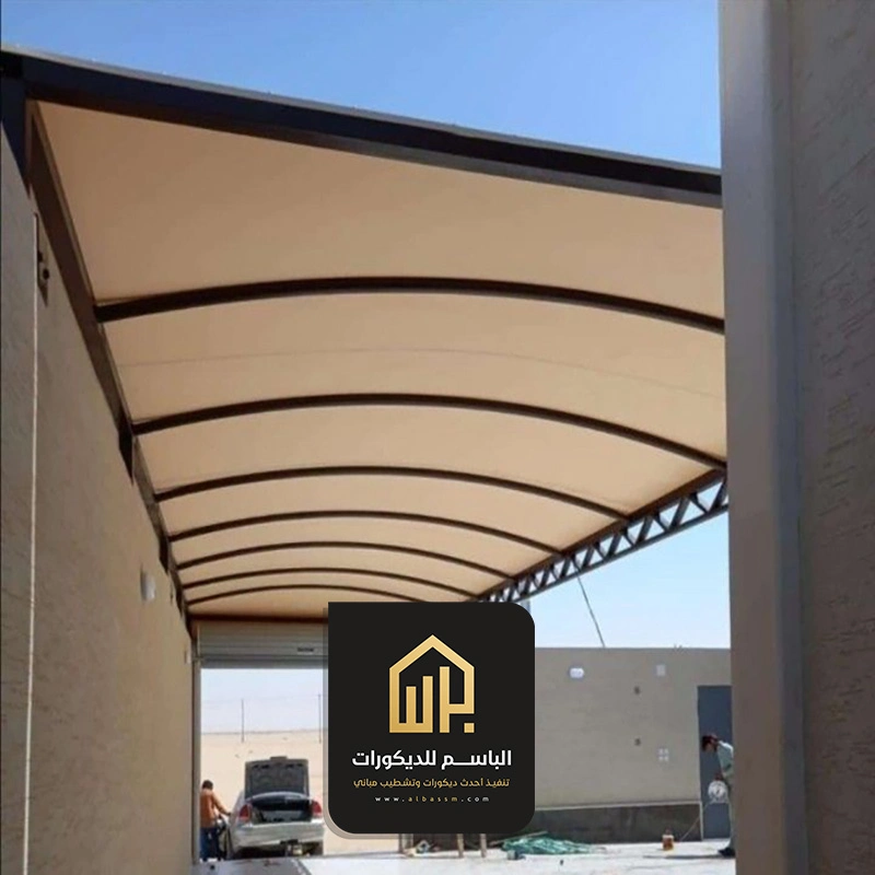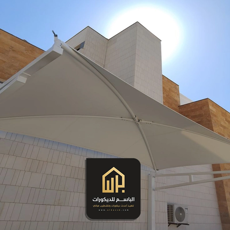 - أيضا لم يعد الاعتماد فقط على الحديد الثقيل بل تشمل الخامات الحديثة مثل الألمنيوم المقاوم للصدأ وأقمشة الـ PVC أو البولي إيثيلين التي توفر حماية عالية من الأشعة فوق البنفسجية وتسمح بمرور الهواء مما يقلل من حرارة المنطقة المظللة بفعالية.