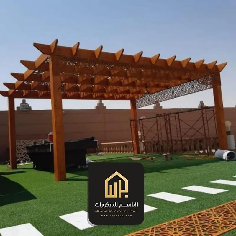 - بناء البرجولة بدقة وفق التصميم المتفق عليه.