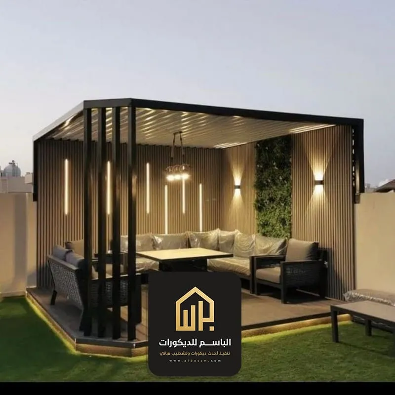 يفضّل الكثيرون في القطيف برجولات خشب مع إضاءة كخيار المثالي لإضافة لمسة فاخرة وعملية في نفس الوقت. لأن هذا النوع من البرجولات يحوّل الجلسات الليلية إلى تجربة مميزة تجمع بين الراحة والجمال. فمع الإضاءة المناسبة، يصبح المكان أكثر دفئا ويعكس أجواء رومانسية رائعة.
